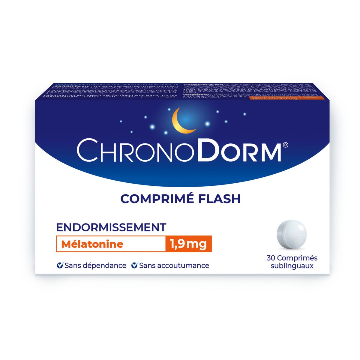 CHRONODORM® 1,9 mg comprimé sublingual à laisser fondre sous la langue, pour une meilleur absorption de la mélatonine dans la circulation sanguine et ainsi réduire le temps d'endormissement.