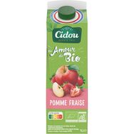 Boisson à la pomme et à la fraise, issue de l'agriculture biologique.