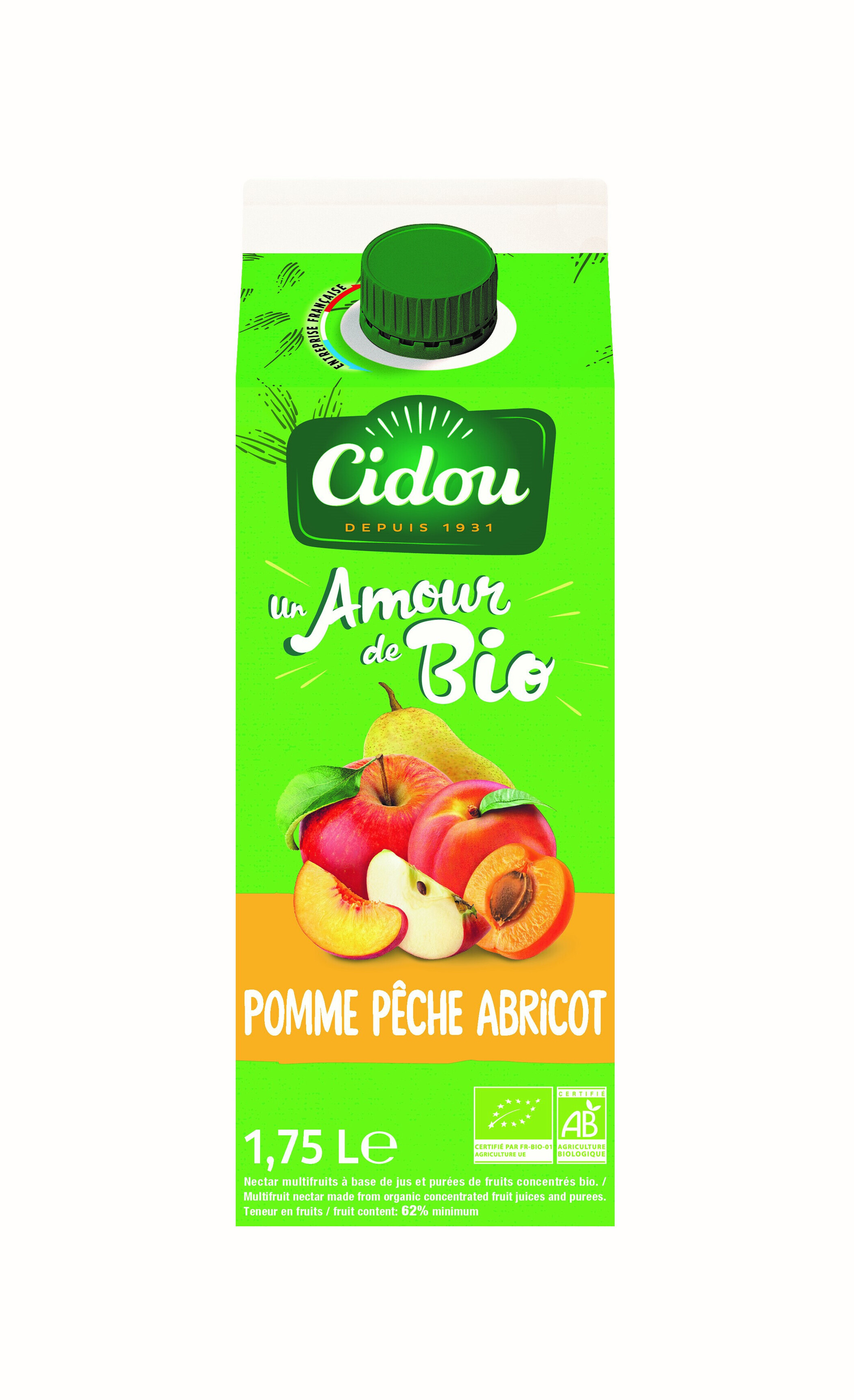 Nectar multifruits à base de jus et purées de fruits concentrés issus de l'agriculture biologique