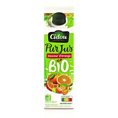 jus d'orange 36%, jus de mandarine 32%, jus de raisin 32%