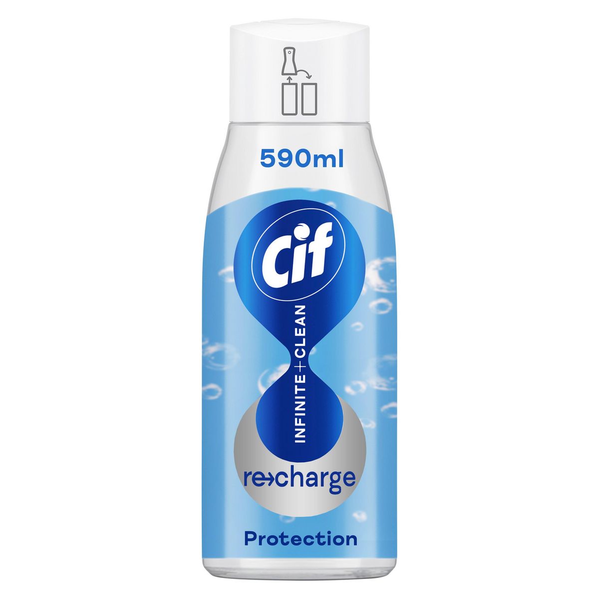 Simplifiez votre routine de nettoyage avec le pistolet spray Cif Infinite+Clean. Choisissez le format recharge qui s'utilise avec le pulvérisateur du spray pour choisir un format plus économique** équivalent à plus de 2 fois la quantité du spray, vous permettant de réduire de 70%** la quantité de plastique utilisée. À travers cette innovation, Cif s'engage vers un avenir plus durable. Sa formule tout en 1 unique multi-usages et multi-surfaces offre un nettoyage sans efforts. Ce produit nettoyant est spécialement conçu pour un nettoyage longue durée de toutes les surfaces. Sa technologie unique aux probiotiques naturels continue à agir pendant 7 jours. Vous pouvez également utiliser Cif Infinite+Clean pour rafraîchir vos textiles. Vivez une expérience complète grâce à ce pistolet multi-usages et multi-surfaces : cuisine (plaques de cuisson, hotte, évier, micro-ondes), salle de bain (baignoire, miroir, toilettes), chambre (table de nuit, luminaires, étagères poussiéreuses), salon (table basse, meuble vitré, consoles de jeux ou téléphone portable), garage (vélo, raquette de tennis, carrelage, réfrigérateur) et bien d'autres… Nettoyez sans restriction toutes les surfaces de votre maison, même les plus fragiles comme le marbre ou les objets électroniques***. La formule Cif Infinite+Clean est adaptée et certifiée pour nettoyer en toute sécurité les surfaces alimentaires et l'environnement de la famille y compris celui des enfants et des animaux de compagnie (chat et chien). Expérimentez une toute nouvelle routine de ménage grâce à un pulvérisateur unique qui diffuse une brume fine déposant la quantité idéale sur les surfaces ou les textiles de la maison. Profitez d'un parfum unique frais pour une sensation de fraîcheur longue durée. Notre nettoyant Protection assure une propreté impeccable sans traces, instantanément et sans rincer, tout en assurant une formule testée dermatologiquement au pH neutre. Laissez ensuite les probiotiques naturels continuer à agir pendant 7 jours après que vous avez fini de nettoyer. Avec Cif Infinite+Clean, nettoyez moins souvent et profitez plus longtemps de votre propreté ! *1 recharge équivaut à plus de 2 fois la quantité du spray. **Vs l'achat d'un spray. ***Pour le matériel électronique, débrancher, vaporiser sur un chiffon et essuyer doucement.