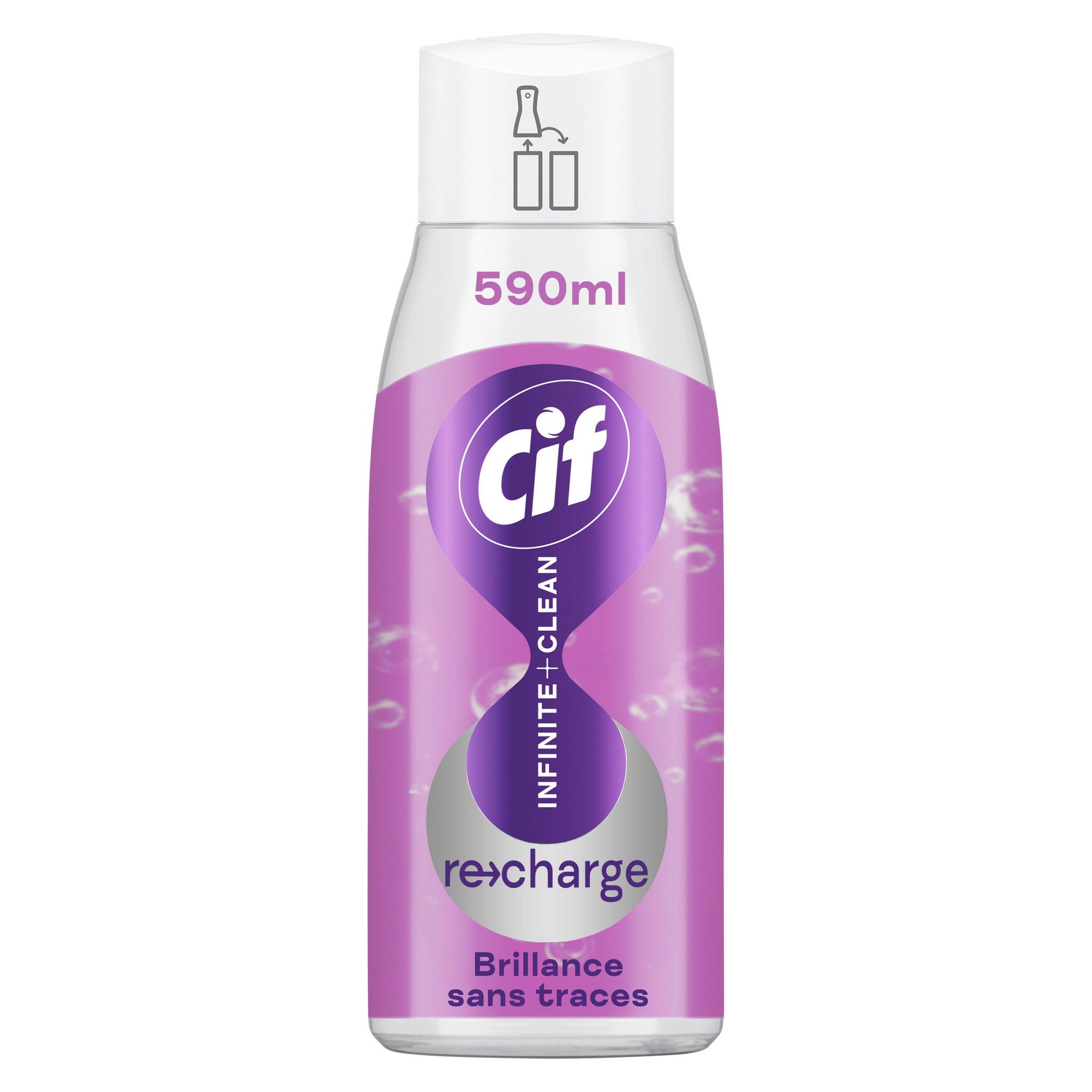 Simplifiez votre routine de nettoyage avec le pistolet spray Cif Infinite+Clean. Choisissez le format recharge qui s'utilise avec le pulvérisateur du spray pour choisir un format plus économique** équivalent à plus de 2 fois la quantité du spray, vous permettant de réduire de 70%** la quantité de plastique utilisée. À travers cette innovation, Cif s'engage vers un avenir plus durable. Sa formule tout en 1 unique multi-usages et multi-surfaces offre un nettoyage sans efforts. Ce produit nettoyant est spécialement conçu pour un nettoyage longue durée de toutes les surfaces. Sa technologie unique aux probiotiques naturels continue à agir pendant 7 jours. Vous pouvez également utiliser Cif Infinite+Clean pour rafraîchir vos textiles. Vivez une expérience complète grâce à ce pistolet multi-usages et multi-surfaces : cuisine (plaques de cuisson, hotte, évier, micro-ondes), salle de bain (baignoire, miroir, toilettes), chambre (table de nuit, luminaires, étagères poussiéreuses), salon (table basse, meuble vitré, consoles de jeux ou téléphone portable), garage (vélo, raquette de tennis, carrelage, réfrigérateur) et bien d'autres… Nettoyez sans restriction toutes les surfaces de votre maison, même les plus fragiles comme le marbre ou les objets électroniques***. La formule Cif Infinite+Clean est adaptée et certifiée pour nettoyer en toute sécurité les surfaces alimentaires et l'environnement de la famille y compris celui des enfants et des animaux de compagnie (chat et chien). Expérimentez une toute nouvelle routine de ménage grâce à un pulvérisateur unique qui diffuse une brume fine déposant la quantité idéale sur les surfaces ou les textiles de la maison. Profitez d'un parfum unique frais pour une sensation de fraîcheur longue durée. Notre nettoyant Brillance sans traces assure une propreté impeccable sans traces instantanément, même sur les surfaces vitrées et sans rincer. Laissez ensuite les probiotiques naturels continuer à agir pendant 7 jours après que vous avez fini de nettoyer. Avec Cif Infinite+Clean, nettoyez moins souvent et profitez plus longtemps de votre propreté ! *1 recharge équivaut à plus de 2 fois la quantité du spray. **Vs l'achat d'un spray. ***Pour le matériel électronique, débrancher, vaporiser sur un chiffon et essuyer doucement.
