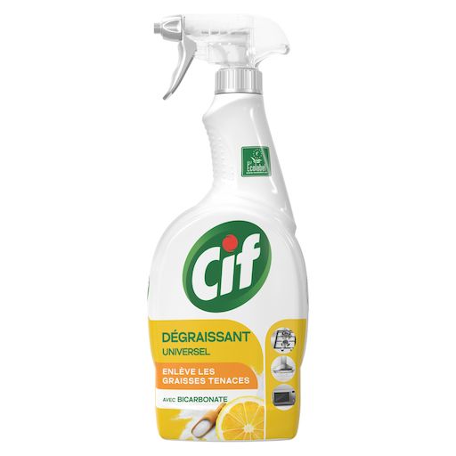 Obtenez une propreté impeccable avec le spray nettoyant Cif Dégraissant Universel. Parfumé aux notes acidulées, ce spray multi-surfaces élimine les graisses tenaces sans efforts. Améliorez votre expérience de nettoyage avec Cif grâce à un résultat de finitions impeccables. Cif s'engage pour la planète en proposant un nettoyant multi-usages efficace tout en respectant le cahier des charges Ecolabel. Depuis 1965, Cif nettoie efficacement votre maison du sol au plafond tout en respectant vos surfaces. Au fil des années, la gamme Cif s'est enrichie pour répondre à toutes vos attentes, en gardant pour ambition de proposer des produits ménagers efficaces (avec notamment une gamme de nettoyants antibactériens : lingette, aérosol, gel et spray désinfectant), pratiques à utiliser et respectant les surfaces. Les pistolets vous assurent un nettoyage en profondeur pour un résultat éclatant et sans traces dans toutes vos pièces et sur tous types de surfaces (salle de bain, cuisine). Les lingettes permettent un résultat impeccable et sans traces en un seul geste, tout en laissant une agréable odeur de frais dans toutes les pièces de la maison. Les crèmes Cif éliminent 100 % des taches grâce à leurs particules nettoyantes 100 % naturelles. Elles sont ultra-efficaces pour nettoyer les taches les plus incrustées sans rayer les surfaces. Le Gel Javel multi-usages Cif élimine les taches, dégraisse et nettoie hygiéniquement sols et surfaces.