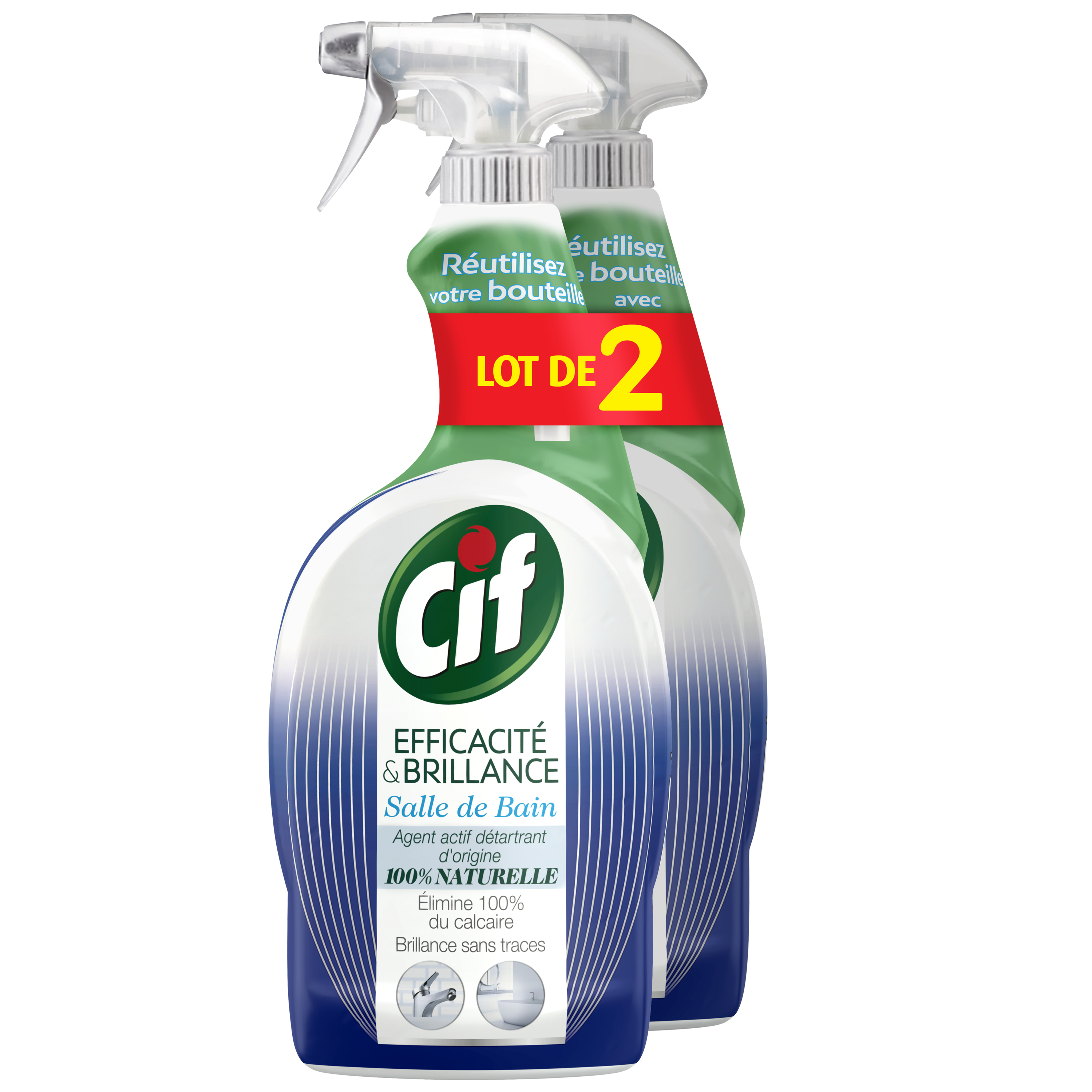 Le spray Cif Efficacité et Brillance Salle de Bain* vous protège des traces d'eau et du calcaire. Grâce à son bouclier anti-traces et sa technologie déperlante, il assure une propreté longue durée.