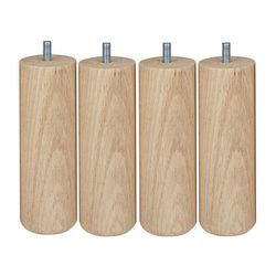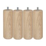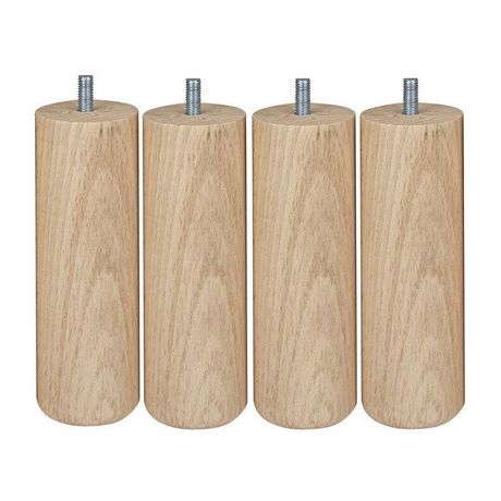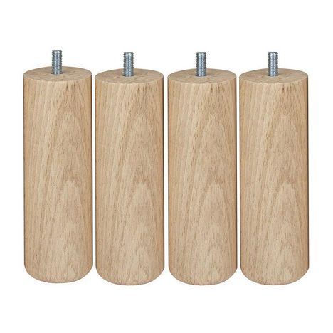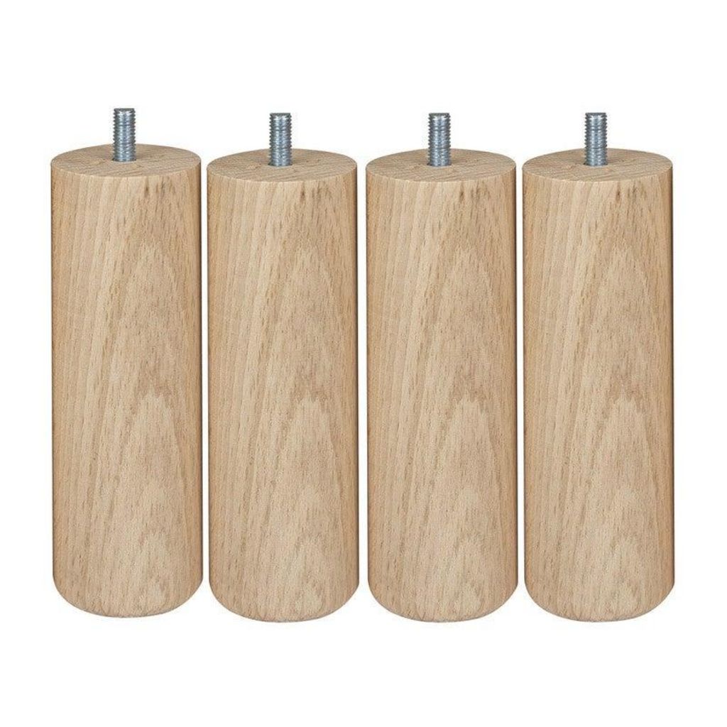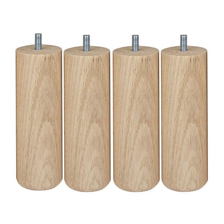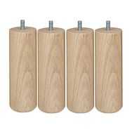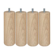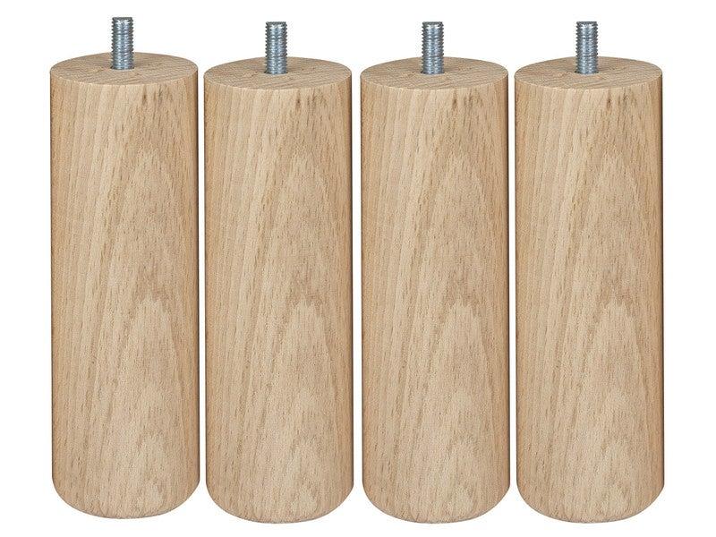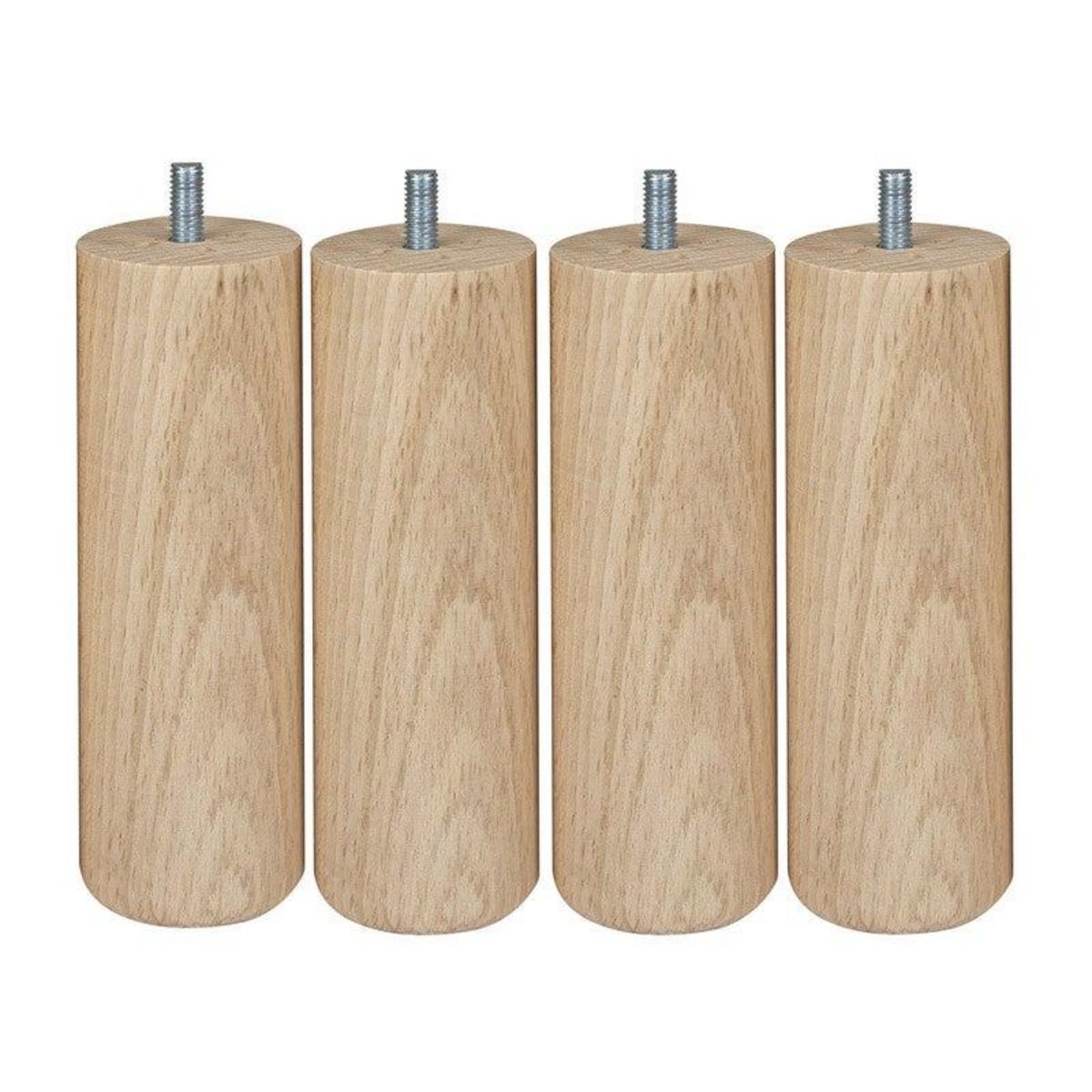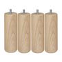 Lot De 4 Pieds De Meuble Cylindrique 15Cm - Hêtre Brut Blanc/Beige