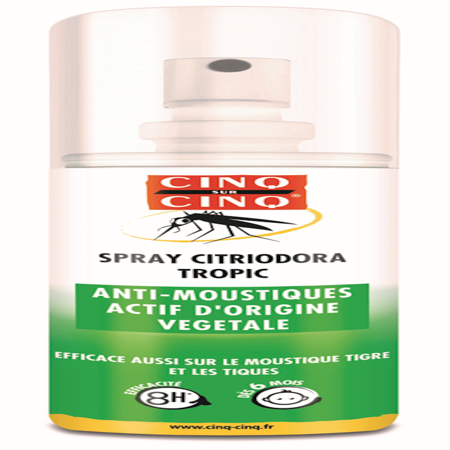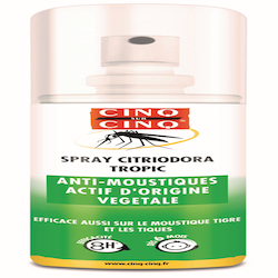 Cinq sur Cinq spray citriodora anti-moustiques et anti-tiques de 100 mL est un répulsif efficace contre les moustiques européens et tropicaux, et les tiques.