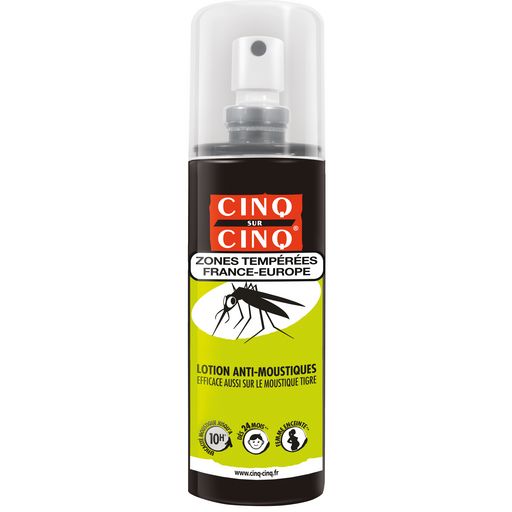 Le Spray Cinq sur Cinq® Zones Tempérées est une lotion anti-moustiques, renforcée pour vos séjours dans les zones infestées (Camargue, les promenades en forêt ou bords de rivières) ou au cours de vos activités de plein air (randonnées et ballades, escalade, marche nordique, pêche…).