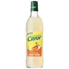 Sucre, eau, jus d'agrumes à base de concentré : 10% (citron, pamplemousse, mandarine), acidifiant : acide citrique, arôme naturel de citron avec autres arômes naturels, arôme naturel de citron, arômes naturels d'agrumes, stabilisant : E445