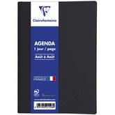 Agenda scolaire Clairefontaine en couverture effet gomme, pour un touché tout en douceur. Agenda journalier scolaire avec une présentation 1 jour par page et 2 jours par page pour le week-end. Comprend 43 pages pratiques (emploi du temps, cartes géographique, pages de notes…). Couvertu