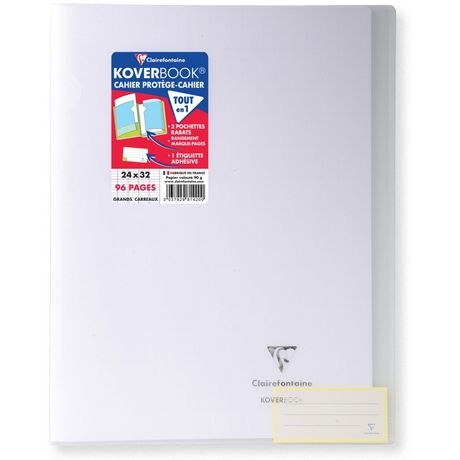 Cahier piqué polypro Koverbook 24x32 cm 96 pages grands carreaux Seyes blanc transparent