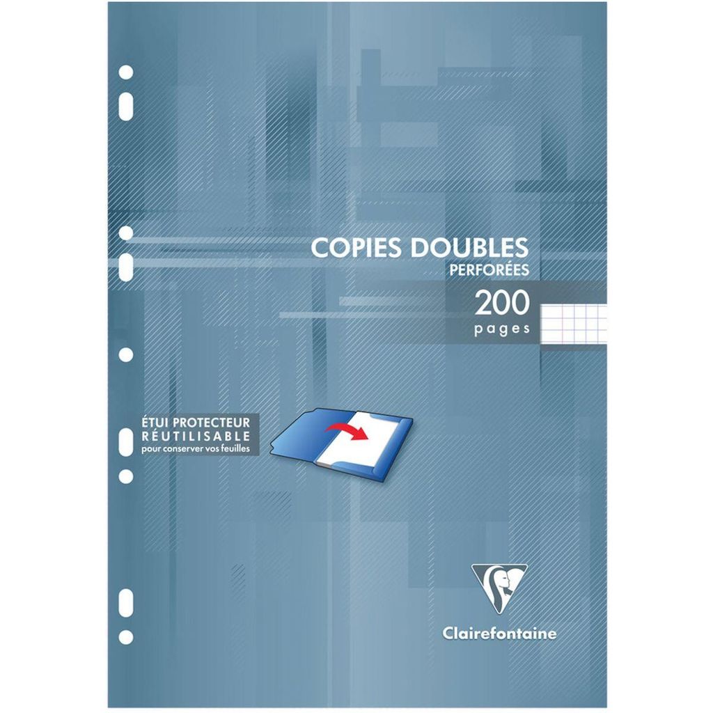 Indispensable en cours , les copies doubles sont au format A4 et disposent d'une perforation universelle de 9 trous pour se ranger facilement dans un classeur. Les feuilles sont protégées par un étui carton recyclé imprimé , refermable et réutilisable.