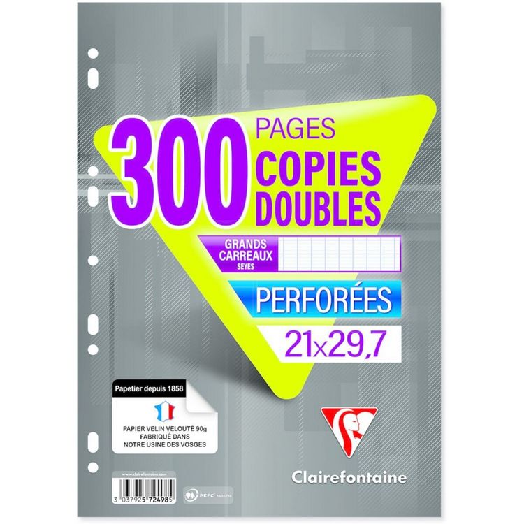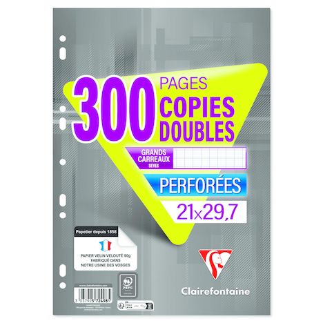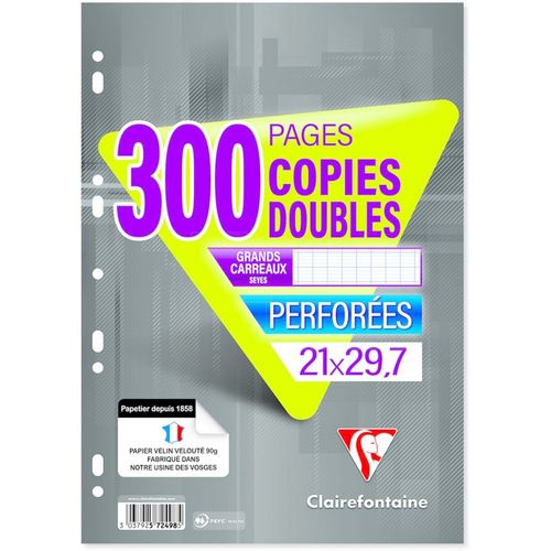 Copies doubles 300 pages perforées 21x29,7cm grand carreaux Seyes