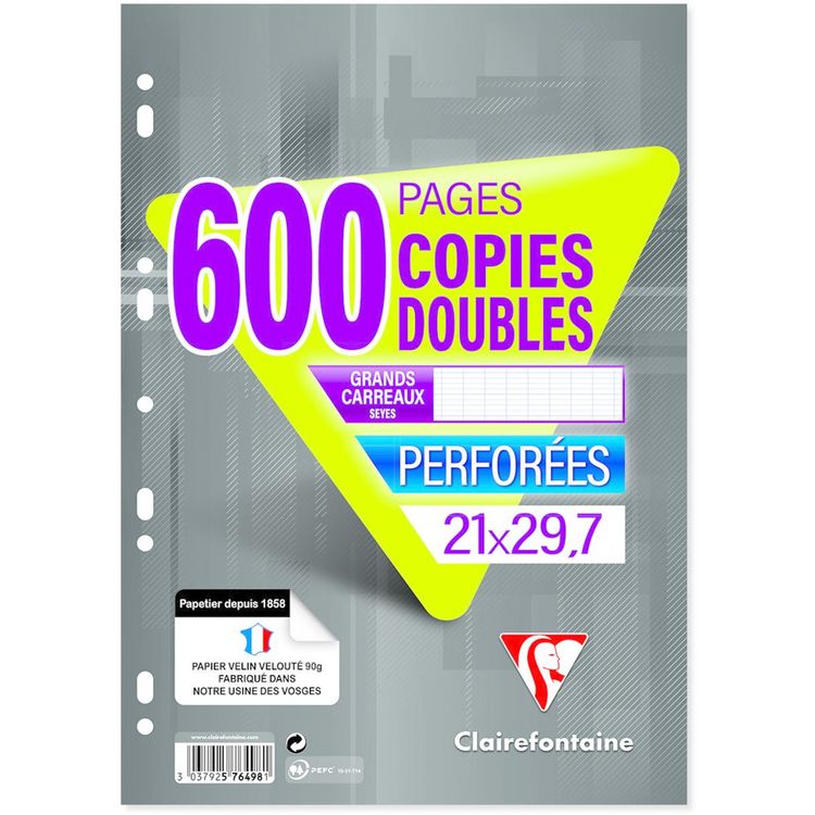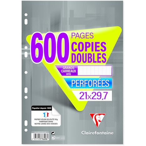 Copies doubles 600 pages 21x29.7cm grands carreaux Seyes 90g
