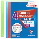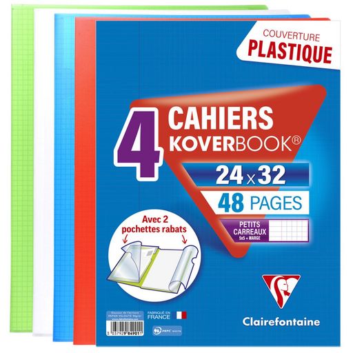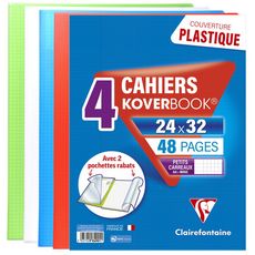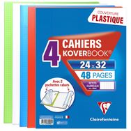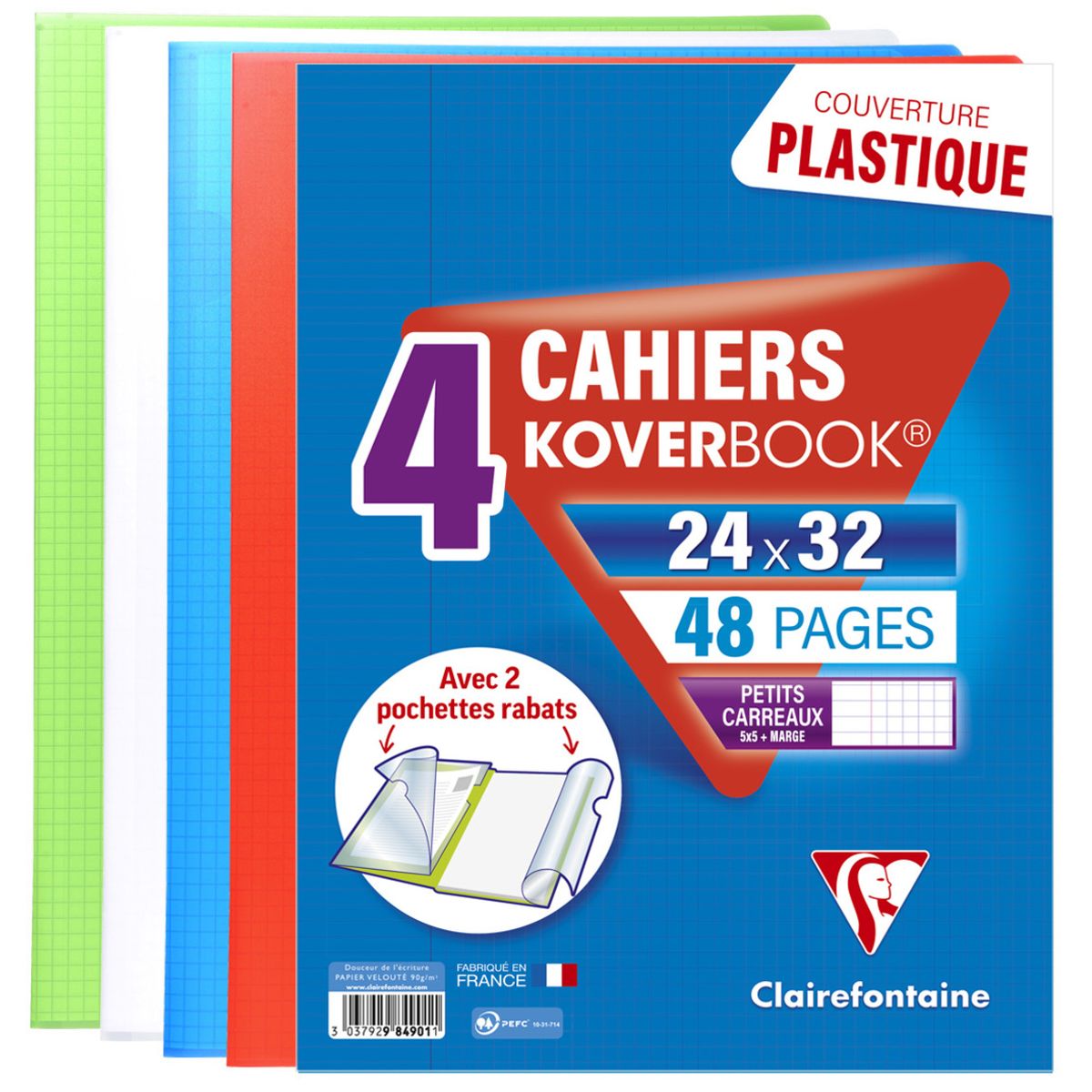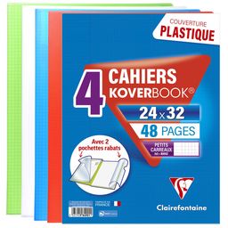 Lot de 4 cahiers polypro Koverbook 24x32cm 48 pages petits carreaux 5x5 translucide