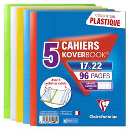 Lot de 5 cahiers piqués polypro Koverbook 17x22cm 96 pages grands carreaux Seyes