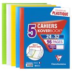 Lot de 5 cahiers piqués polypro Koverbook 24x32cm 96 pages grands carreaux Seyes