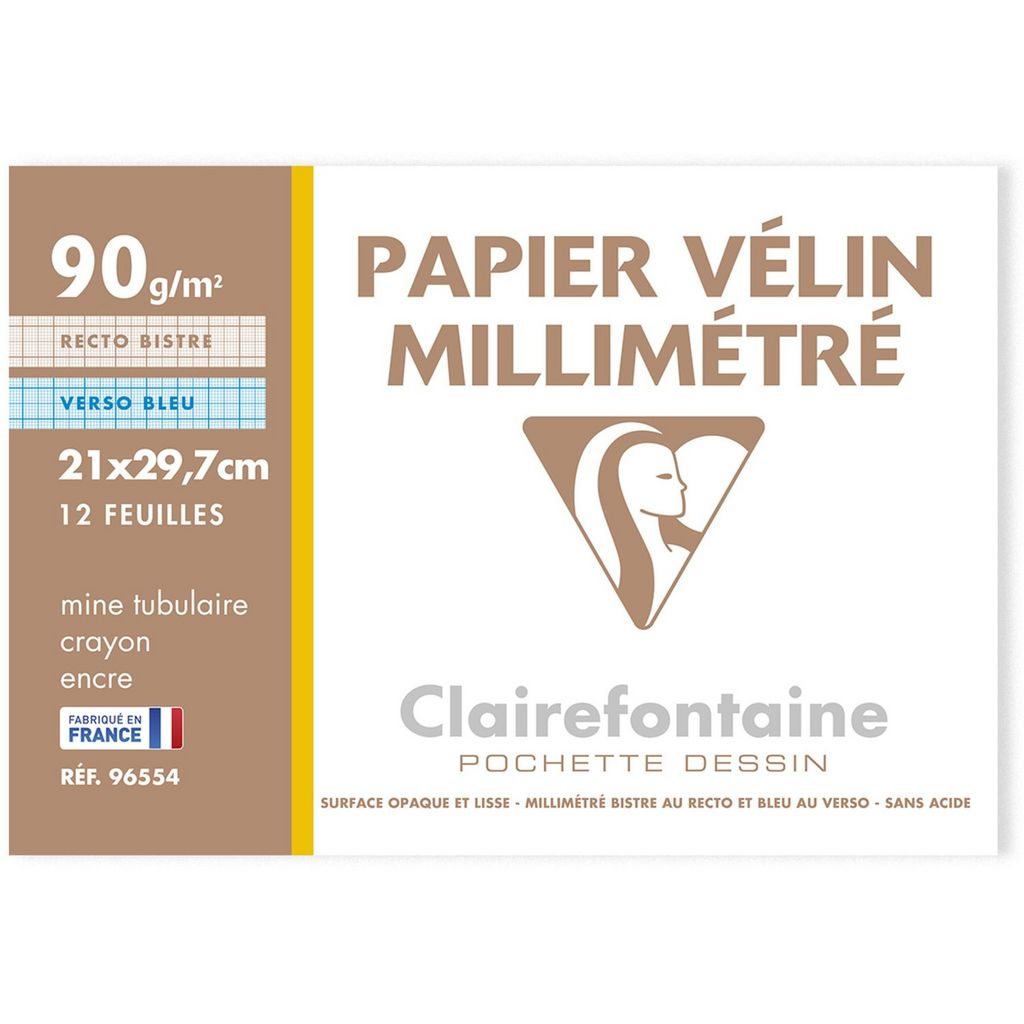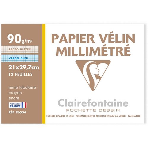 Pochette papier millimétré 12 feuilles A4 90g/m2 bistre/bleu