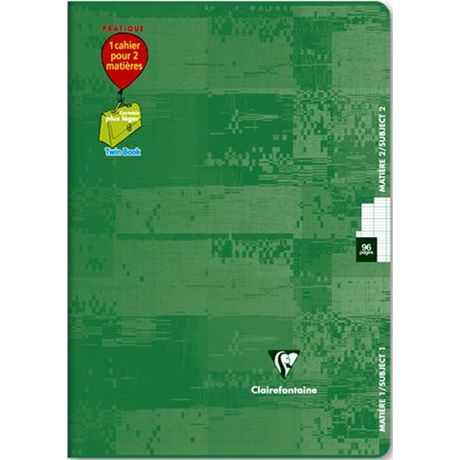 En savoir +Cahier vert grand carreaux pour 2 matières. Cahier 96 pages format 21x29,7cm