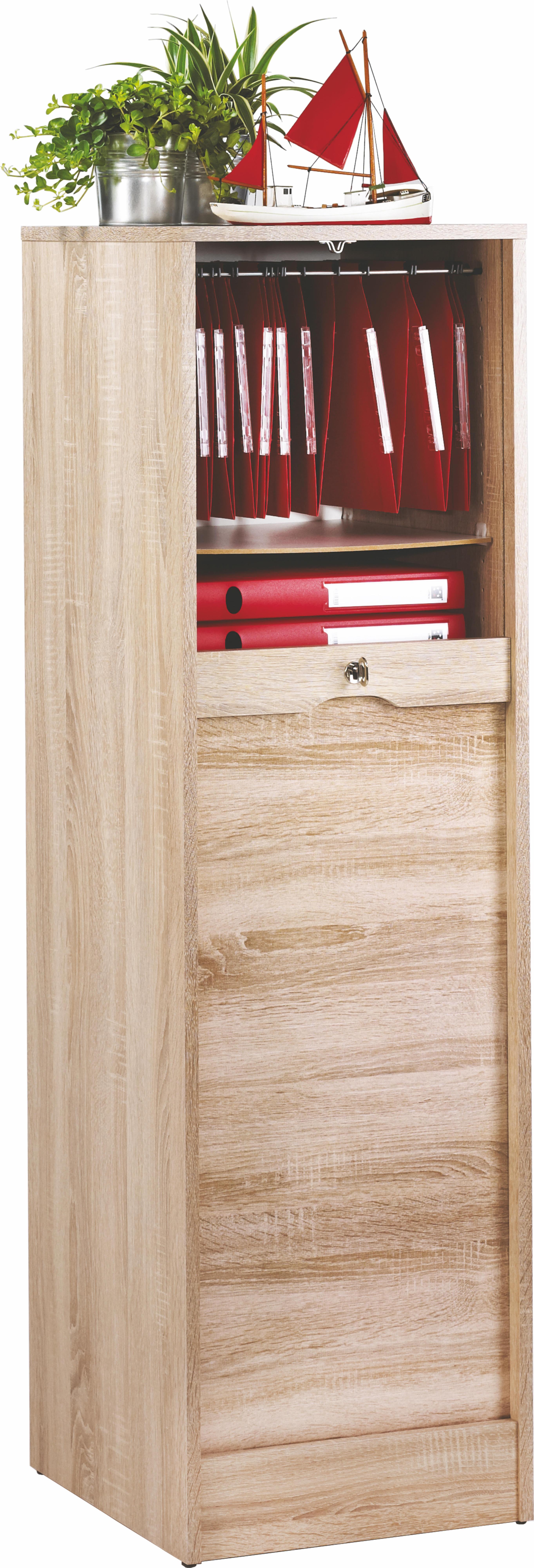 Joli meuble bien pratique mais les deux petites barres qui soutiennent les dossiers suspendus mériteraient d être plus solides car elles plient sous le poids des dossiers et pourtant je n ai pas surchargé. Il serait bien qu il y ait un système qui permette de ne pas descendre le rideau completement , ce serait un plus non négligeable qui permettrait également que l on évite de voir descendre le rideau d un coup si on oubli de soutenir le rideau lorsque l on débloque la clef. Sinon fait le job