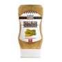 Ingrédients : relish(32%) (cornichons(19%)(non UE), sirop de maïs, sirop de maïs à haute teneur en fructose, vinaigre, sel, émulsifiant (gomme xanthane (E415)), acidifiant (chlorure de calcium (E509)), curcuma, poivre, épices, conservateur (sorbate de potassium (E202))), eau, sucre, vinaigre d'alcool, cornichons (cornichons(6%)(non UE), eau, vinaigre d'alcool), oignon, oignons, épaississant (adipate de diamidon acétylé (E1422)), MOUTARDE à l'ancienne (eau, graine de MOUTARDE, vinaigre d'alcool, sel), acidifiant (acide lactique (E270)), curcuma, girofle