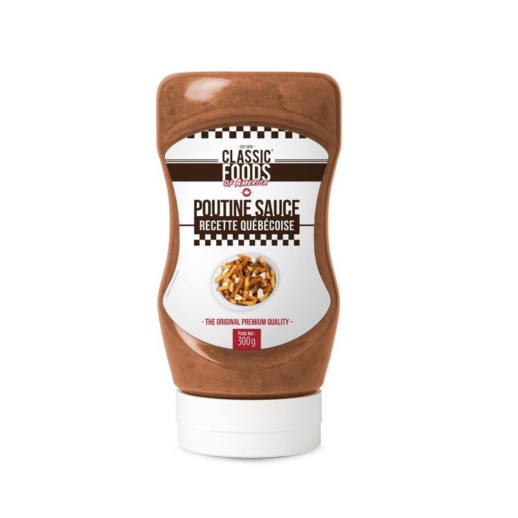 La sauce poutine est cette célèbre sauce brune emblématique du Québec. Son goût très savoureux et sa texture veloutée viendront napper à la perfection les frites chaudes. Sauce en format squeeze. A utiliser chaude ou froide.