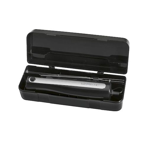 Le Clatronic EM 3702 est un couteau électrique puissant et précis, idéal pour couper le pain, la viande, le poisson, ainsi que les légumes et aliments congelés. Il est équipé d'une lame dentelée en acier inoxydable et d'un moteur silencieux de 120 watts pour une performance optimale. Ce couteau présente un design moderne en noir et argent qui s'intègre parfaitement dans toutes les cuisines. Il dispose d'un interrupteur de sécurité et d'un bouton de déverrouillage des lames pour un usage sûr. Ses dimensions sont de 490 mm de longueur, 55 mm de largeur et 65 mm de profondeur, et il pèse 620 grammes. Le corps est fabriqué en plastique robuste. Le produit comprend également une boîte de rangement pratique.