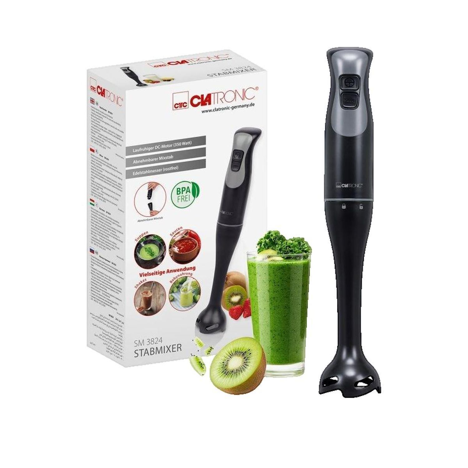Mixeur Plongeant Clatronic 350W 2 Vitesses Noir