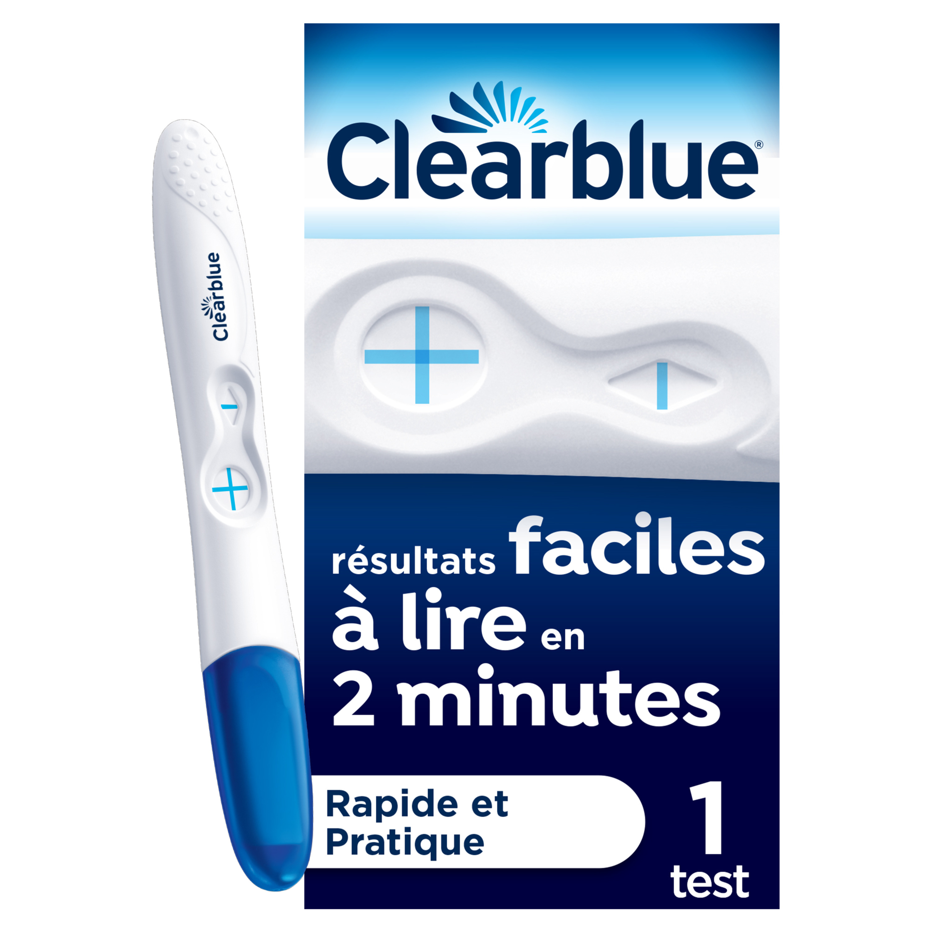 Ce dispositif est destiné à domicile. Garder hors de portée des enfants. Clearblue Pratique et Rapide est un test de grossesse fabriqué par SPD Swiss Precision Diagnostics GmBH et distribué par Procter & Gamble Pharmaceuticals France SAS. Il est recommandé de réaliser le test dès la date présumée des règles. En cas de doute sur le résultat obtenu, consulter votre médecin. Ce dispositif médical de diagnostic in vitro est un produit de santé réglementé qui porte, au titre de cette réglementation, le marquage CE. Lire attentivement la notice et demander conseil à un professionnel de santé. N° interne de référencement : 21/03/PROCTER/GP/007. Date de réalisation : 22/03/2021. Clearblue est une marque commerciale de SPD Swiss Precision Diagnostics GmbH (« SPD »). Copyright © 2021 SPD. Tous droits réservés.