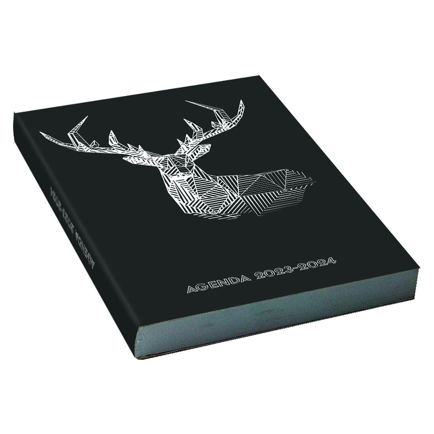 Agenda scolaire journalier 12x17 cm Origami noir cerf 2023-2024