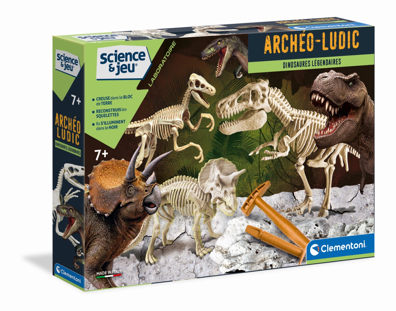Un coffret de paléontologue pour se plonger dans la Préhistoire et découvrir des créatures légendaires comme le T-Rex, le Vélociraptor et le Tricératops ! Assemble le squelette du T-Rex géant et déterre les restes fossilisés du Vélociraptor et du Tricératops ! Tu pourras recréer de formidables comb