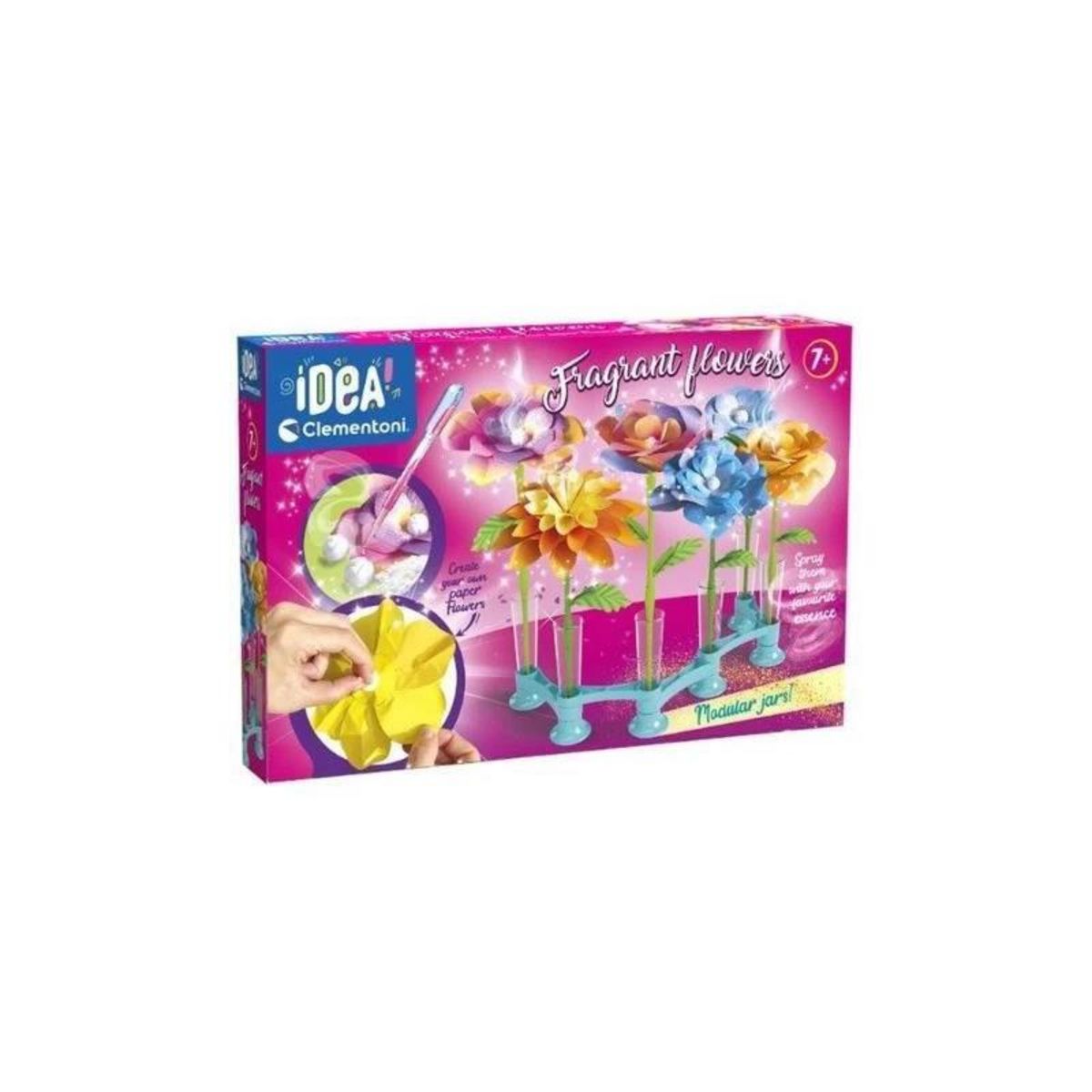 CLEMENTONI - Fleurs parfumées à créer - 7 créations - IDEA est un coffret créatif qui permet aux enfants de laisser libre cours à leur imagination. Ce jeu original propose d'assembler et de personnaliser des fleurs en papier colorées, les parfumer et les décorer selon leurs envies. Les pots modulables incluent tout le nécessaire pour créer des compositions florales uniques et originales.