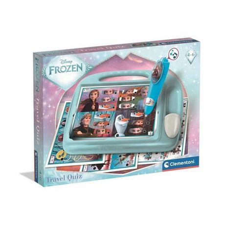 - Un jeu éducatif de 18 activités pour s'amuser avec les personnages de La Reine des Neiges. - Un pupitre interactif pour découvrir les formes, les couleurs, les chiffres, les ensembles, l'espace et les dimensions a travers plus de 180 quiz. - L'enfant répond aux quiz sur les fiches en positionnant le stylo électronique sur les réponses. Le stylo indique si les réponses sont justes ou erronées par des effets sonores et lumineux. - Pratique et facile a transporter, il est idéal pour jouer meme en voyage. - Le jeu permet a l'enfant de développer son sens de l'observation, sa mémoire et ses capacités d'association logique.