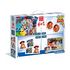 1 puzzle de 30 pièces, 1 domino de 28 cartes, 1 mémo de 32 fiches et 6 cubes