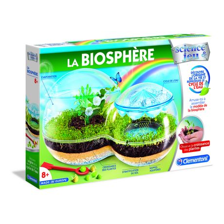 Découvre l'origine de la vie et reproduis le cycle de l'eau en t'amusant à assembler ta propre biosphère. Le coffret scientifique 'La Biosphère' comprend tout ce dont tu as besoin pour faire pousser tes propres plantes tout en apprenant les mécanismes d'évaporation et de condensation. Tu devras tout d'abord assembler ta biosphère puis le manuel inclus t'expliquera comment faire germer et grandir tes plantes.
