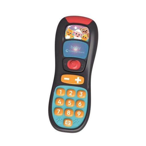 La télécommande de Bébé parlant CLEMENTONI (réf. CLE17517, EAN 8005125175178) stimule l'éveil des tout-petits grâce à ses 10 boutons chiffrés, ses 4 touches colorées et ses effets lumineux. Conçue pour imiter une vraie télécommande, elle éveille la curiosité tout en développant la coordination œil-main.