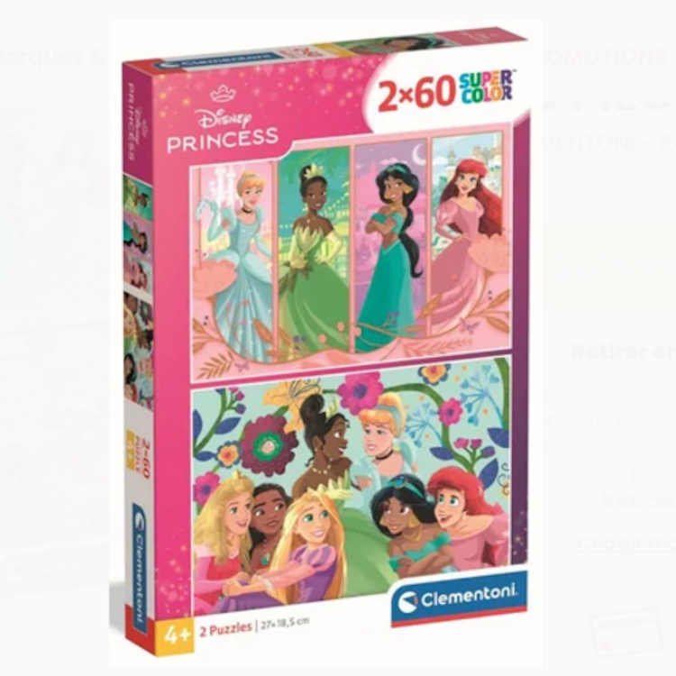 Puzzle 2 x 60 pièces - Disney Princess - CLEMENTONI