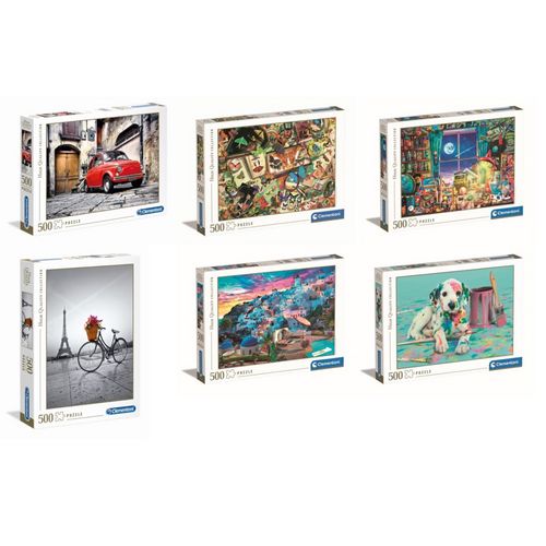 Un assortiment de puzzles de 500 pièces, de dimensions 49 x 36 cm. Des images captivantes, une impression de qualité, des découpes précises et un matériau résistant.