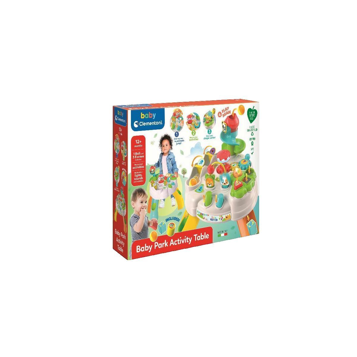 La Table d'activités Park Multicolore de Clementoni est un jouet électronique interactif conçu pour stimuler les sens des bébés dès 12 mois. Elle comprend plusieurs activités amusantes telles que des lumières, des sons, des zones de formes, des engrenages tournants et des personnages mobiles, inspir