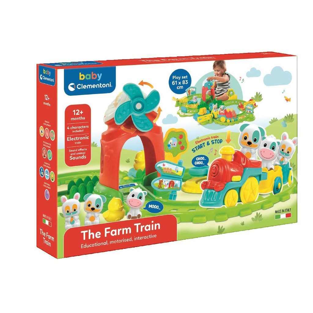 Le Train de Ferme de Clementoni est un jouet éducatif interactif destiné aux enfants dès 12 mois. Ce train animé multicolore est accompagné de quatre figurines comprenant un chien et une vache. En touchant la cheminée, le train se met en mouvement et déclenche des activités ludiques pour stimuler l'