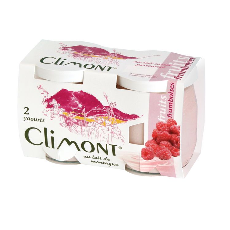 2x125gr Yaourts au lait entier de montagne Fruits Framboises