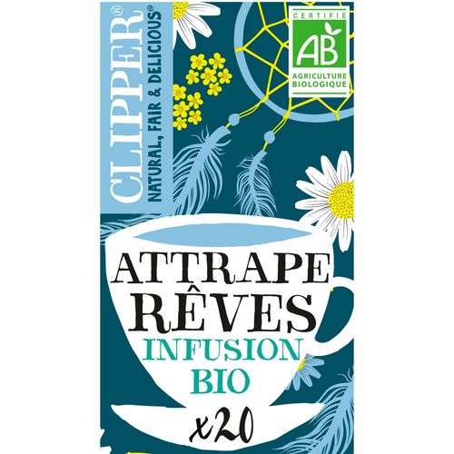 Découvrez l'infusion attrape rêves Clipper et laissez-vous emporter par ses notes de cannelle, de camomille et de rooibos. Bio et naturellement sans caféine, cette tisane saveur orange est idéale avant une bonne nuit de sommeil.