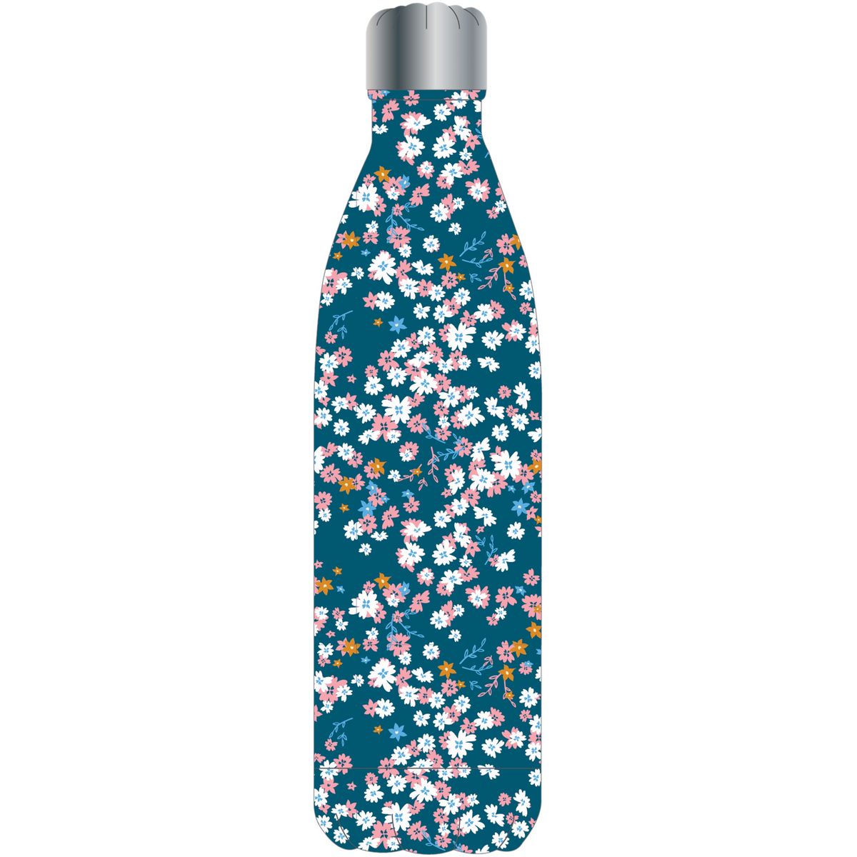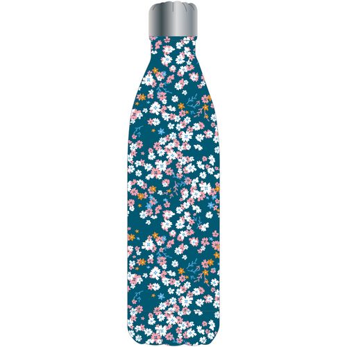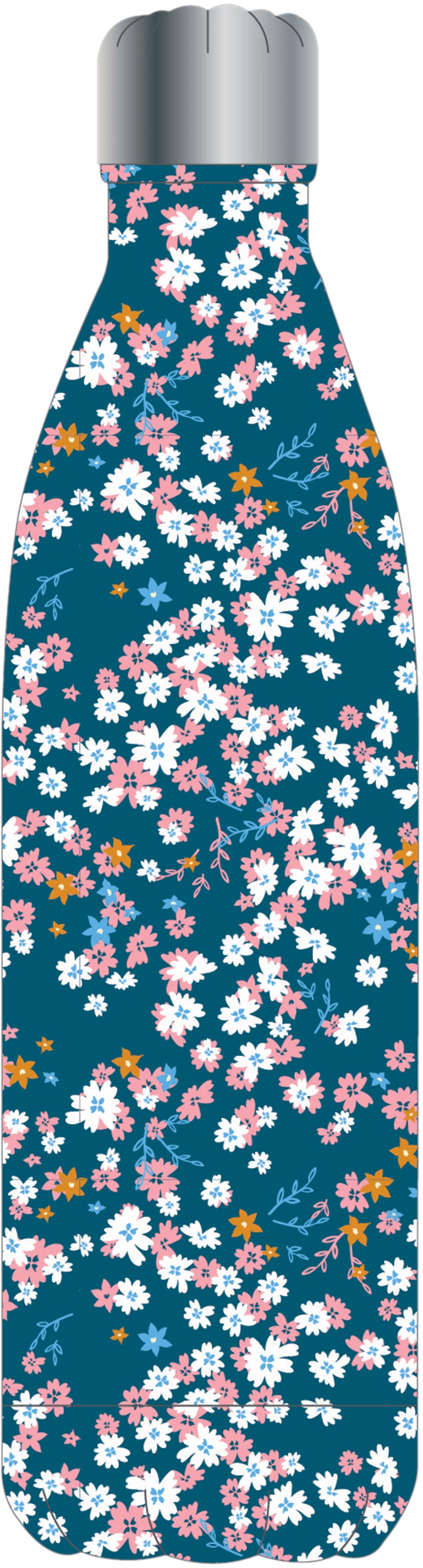 Bouteille isotherme à fleurs bleu en acier inoxydable 50cl
