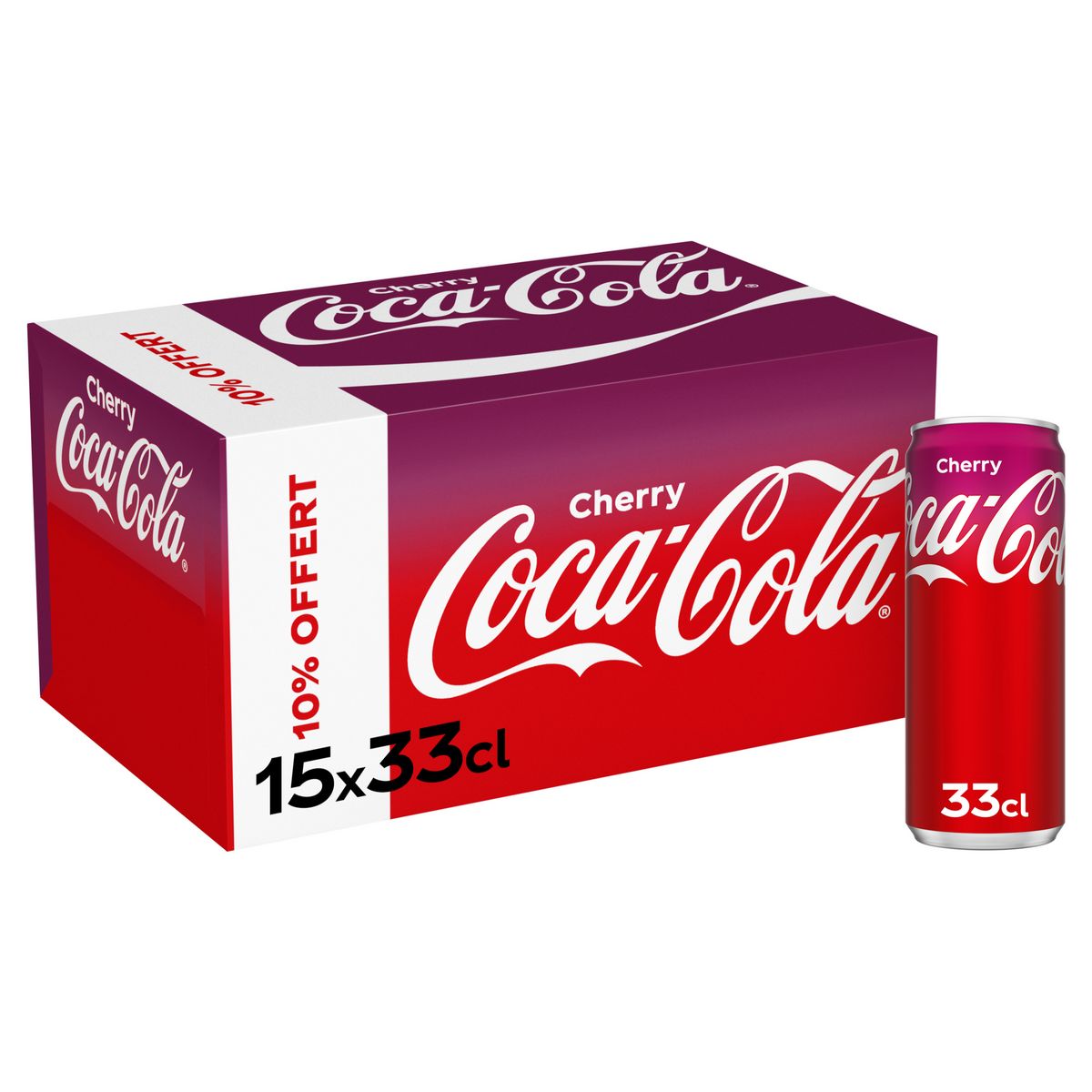 Boisson rafraîchissante aux extraits végétaux saveur ceriseUn Coca-Cola Cherry rafraîchissant, au goût délicieuxLe goût de Coca-Cola qui fait le bonheur de plusieurs générationsUne boisson pétillante au goût irrésistibleFait pour être partagé