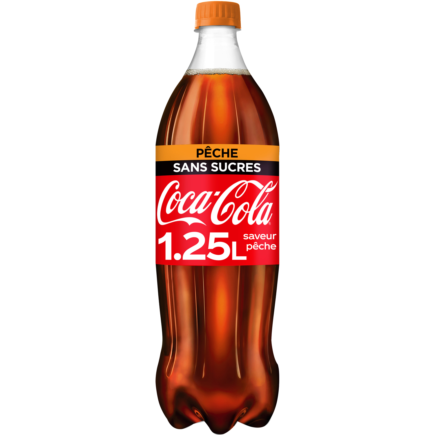 Boisson rafraîchissante aux extraits végétaux saveur pêche, avec édulcorants.
