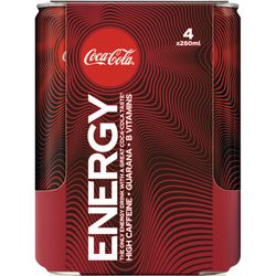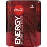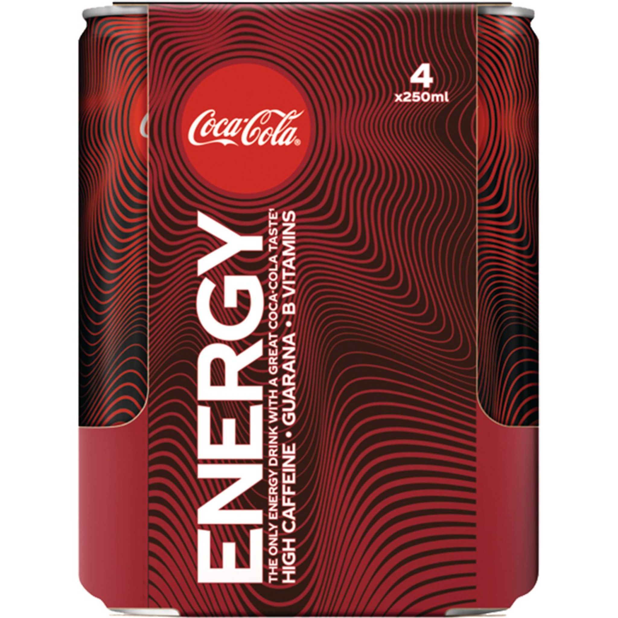 Boisson gazéifiée aromatisée avec caféine, extrait de guarana et vitamines B. Coca-Cola Energy 4 x 250 ml