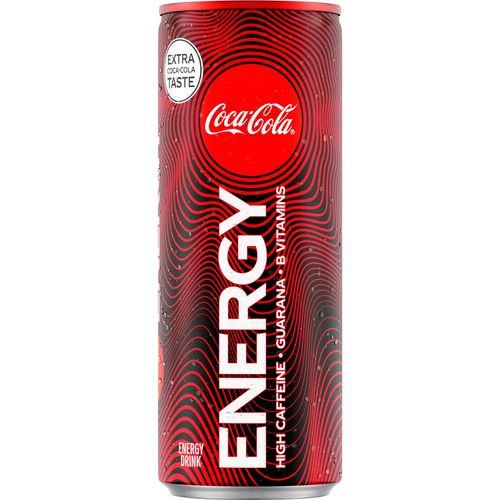 Boisson gazéifiée aromatisée avec caféine, extrait de guarana et vitamines B. Coca-Cola Energy 250 ml