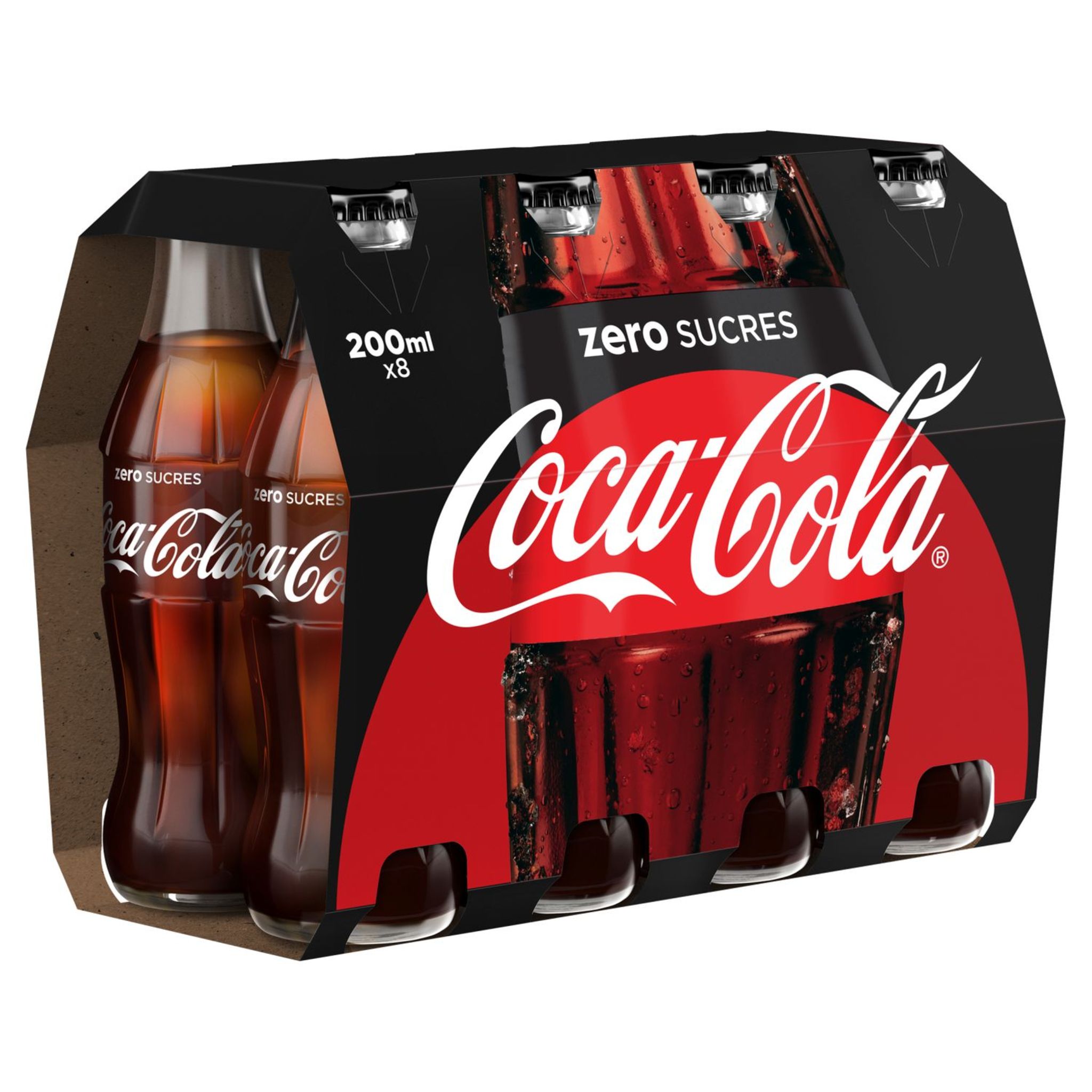 Coca-Cola Zero sucres verre perdu fardeau 8 x 200 ml Boisson rafraîchissante aux extraits végétaux, avec édulcorants.