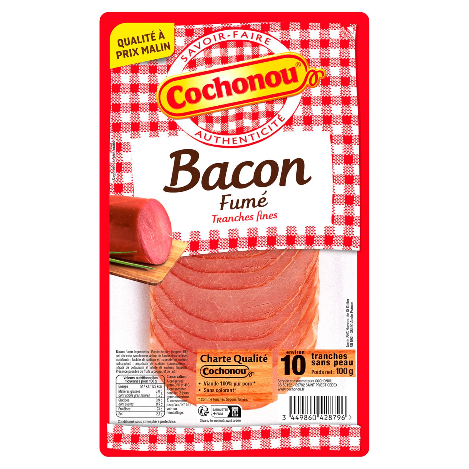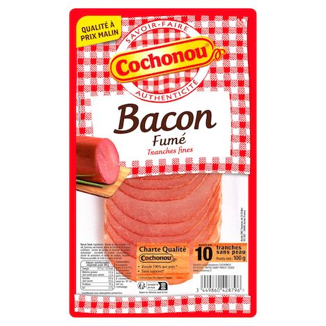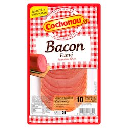 Découvrez tout le savoir-faire de Cochonou avec le bacon, en tranches fines et à la saveur délicatement fumée.