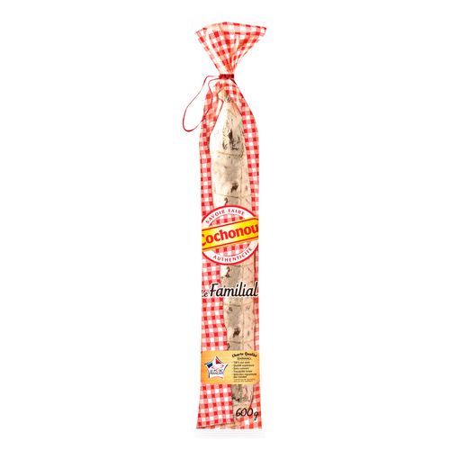 Cochonou met tout son savoir-faire dans ce saucisson 100% pur porc, fabriqué en Rhône-Alpes avec de la viande de porcs VPF, nés, élevés et abattus en France