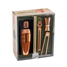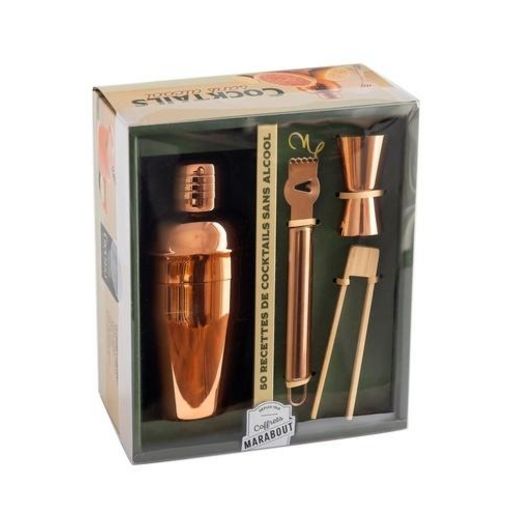 COCKTAIL SANS ALCOOL. COFFRET AVEC 1 SHAKER CUIVRE, 1 PINCE EN BAMBOU, 1 DOSEUR CUIVRE, 1 ZESTEUR CUIVRE ET 1 LIVRE AVEC 50 RECETTES DE COCKTAILS SANS ALCOOL, Hwang Caroline